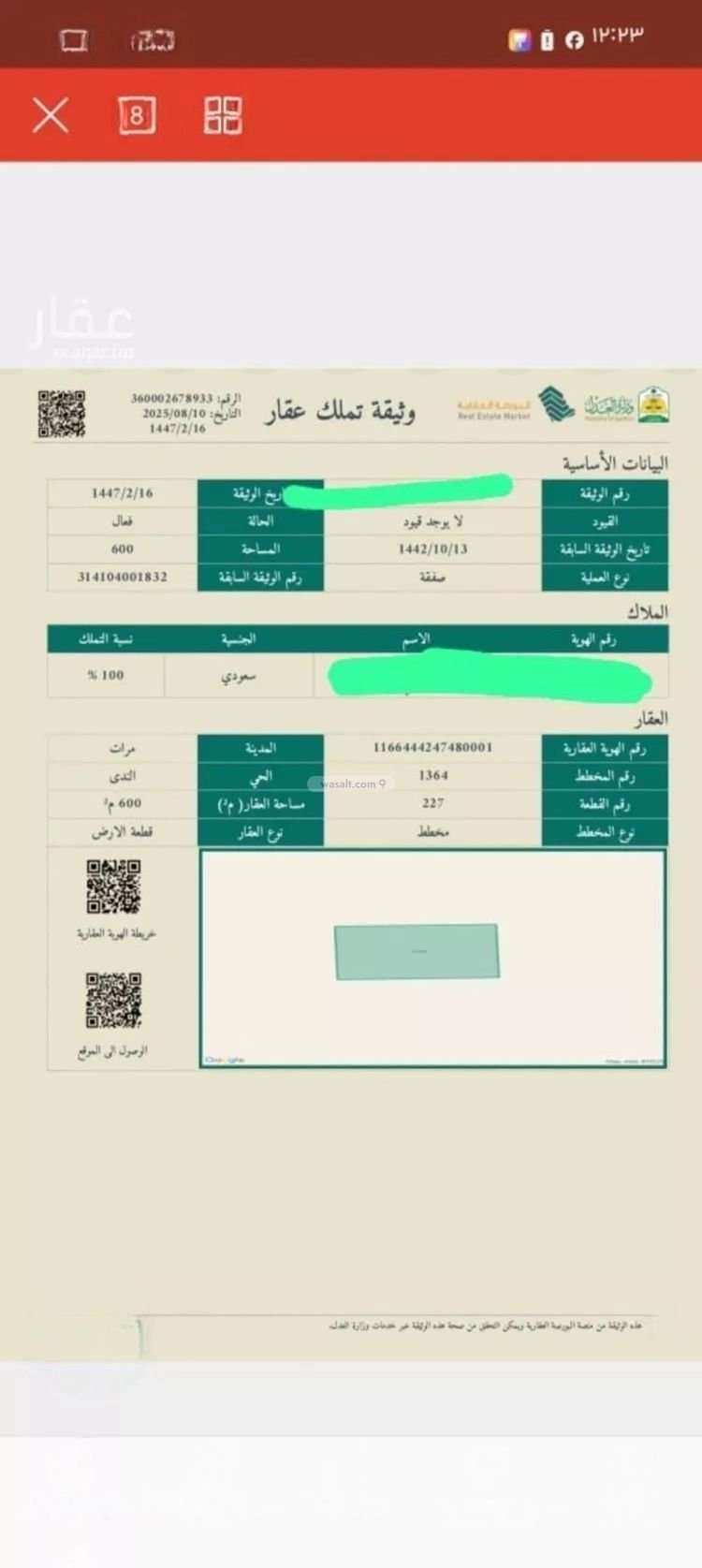 أرض 630 متر مربع شمالية غربية على شارع 20م