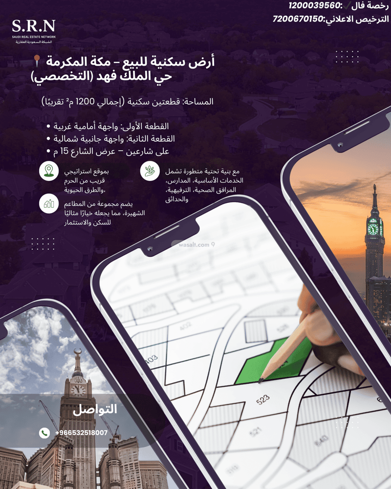 🔹 المساحة: قطعتين سكنية (إجمالي 1200 م² تقريبًا)