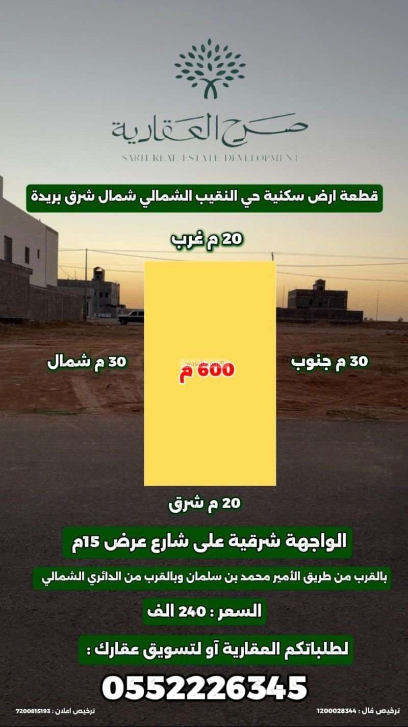🛑للبيع قطعة ارض سكنية حي النقيب الشمالي   🛑