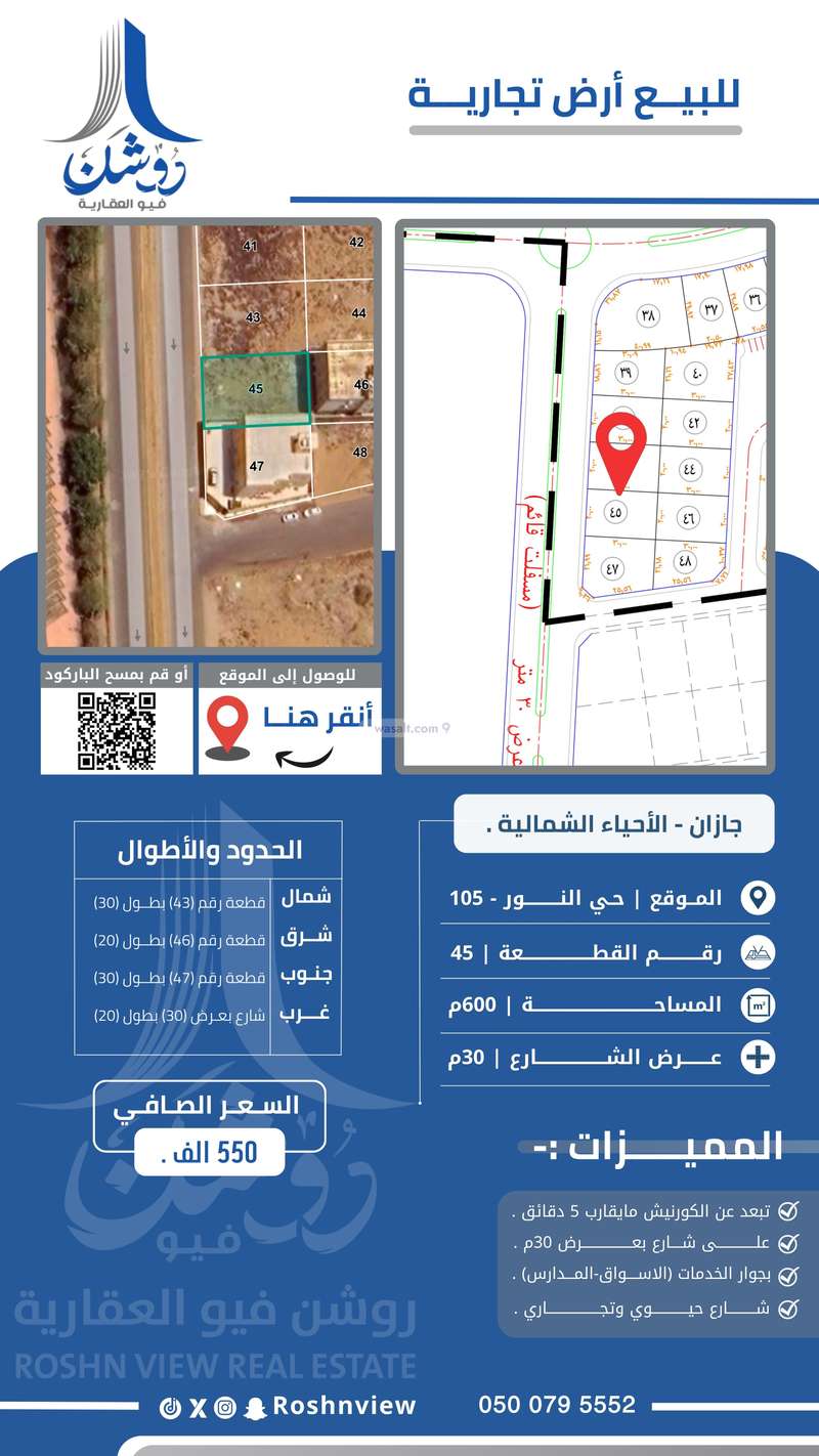 • على شارع تجاري وحيوي بعرض 30م .