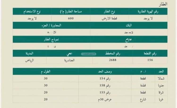 يحدها 1 شارع: غربية٬ بعرض 30 م