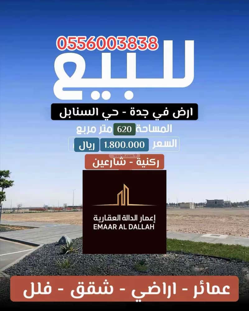 أرض 620 متر مربع جنوبية شرقية على شارع 20م