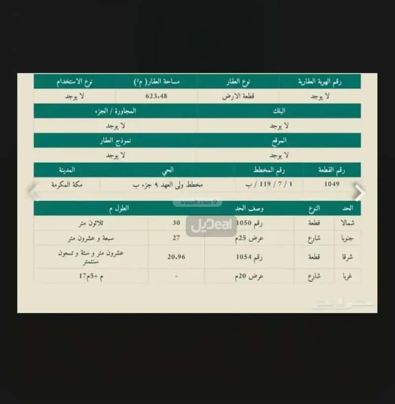أرض 623 متر مربع