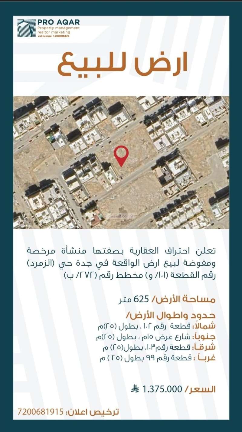 تعلن احتراف العقارية بصفتها منشأة مرخصة ومفوضة لبيع ارض الواقعة في جدة حي (الزمرد) رقم القطعة (101/ و) مخطط رقم (272/ ب).