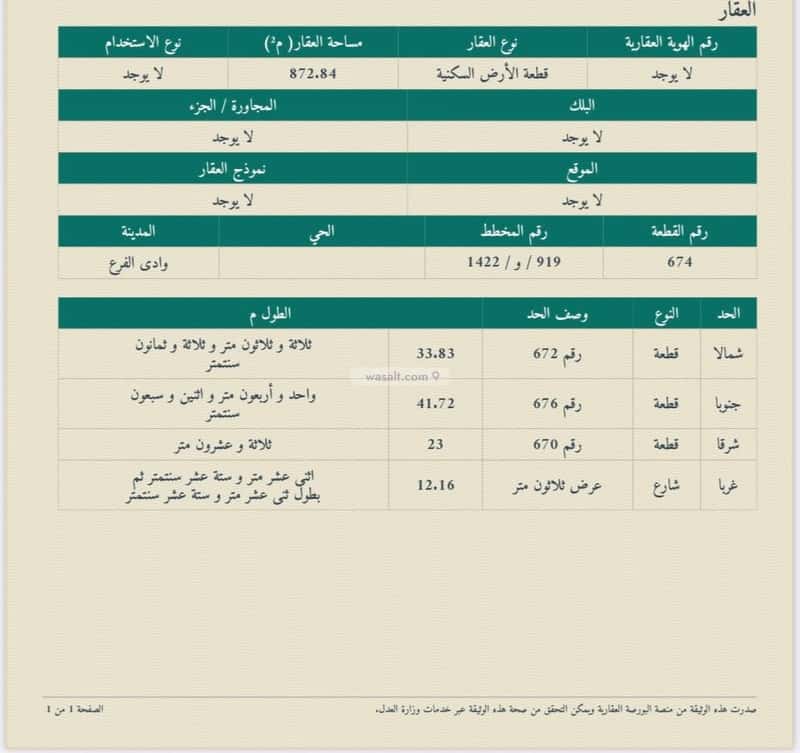 مساحة الأرض 635 متر مربع