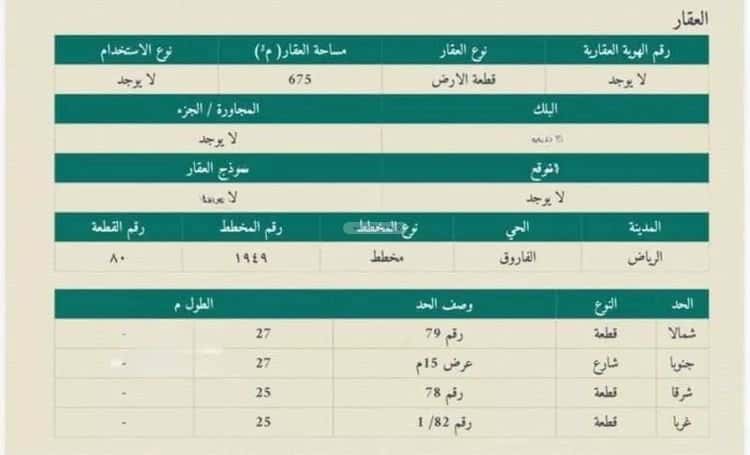 مساحة الأرض 679 متر مربع