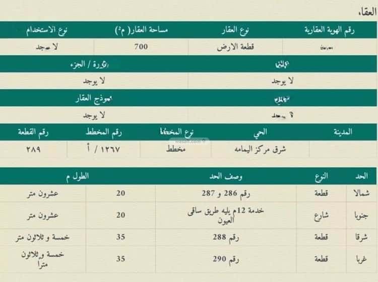 مساحة الأرض 700 متر مربع