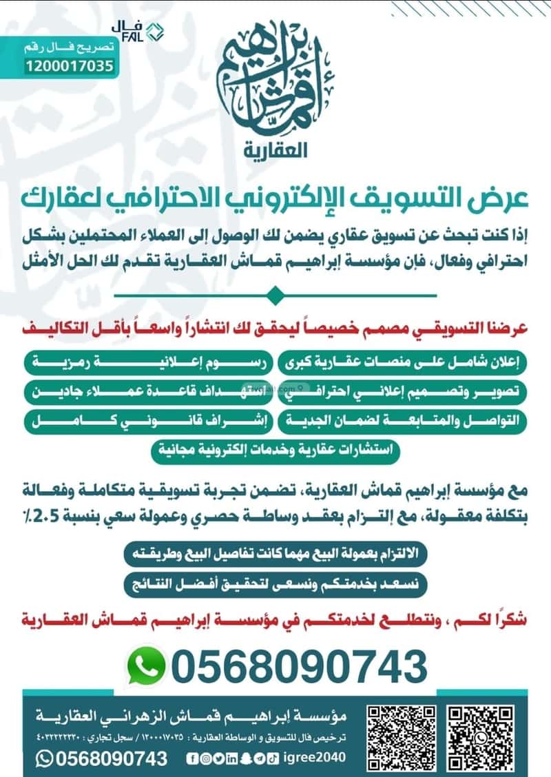 0568090743 – إبراهيم قماش العقارية