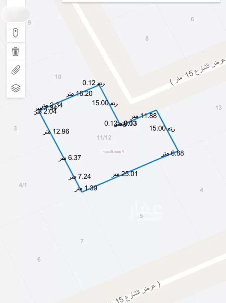 أرض 780 متر مربع شمالية شرقية على شارع 12م