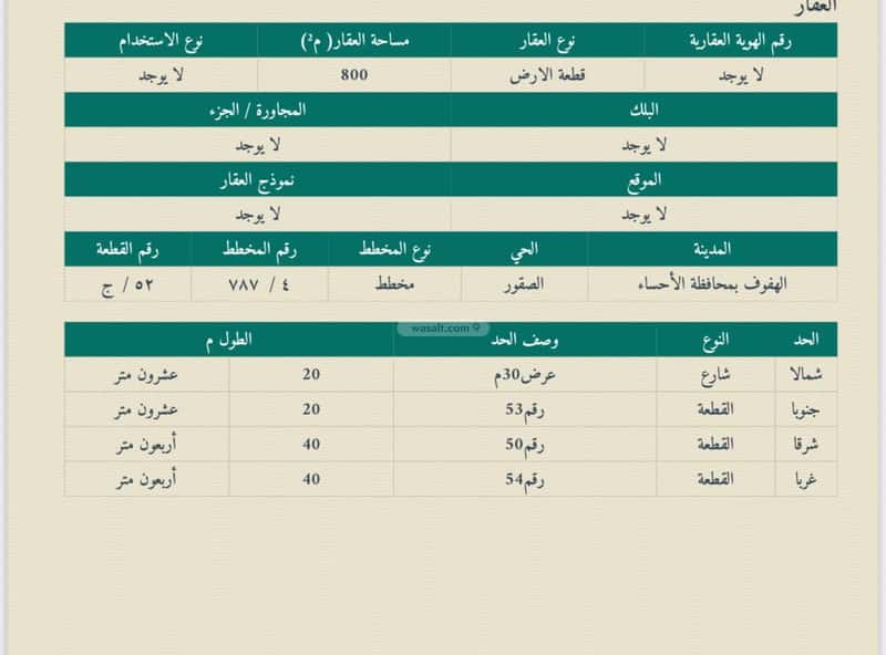 أرض 800 متر مربع شمالية على شارع 30م