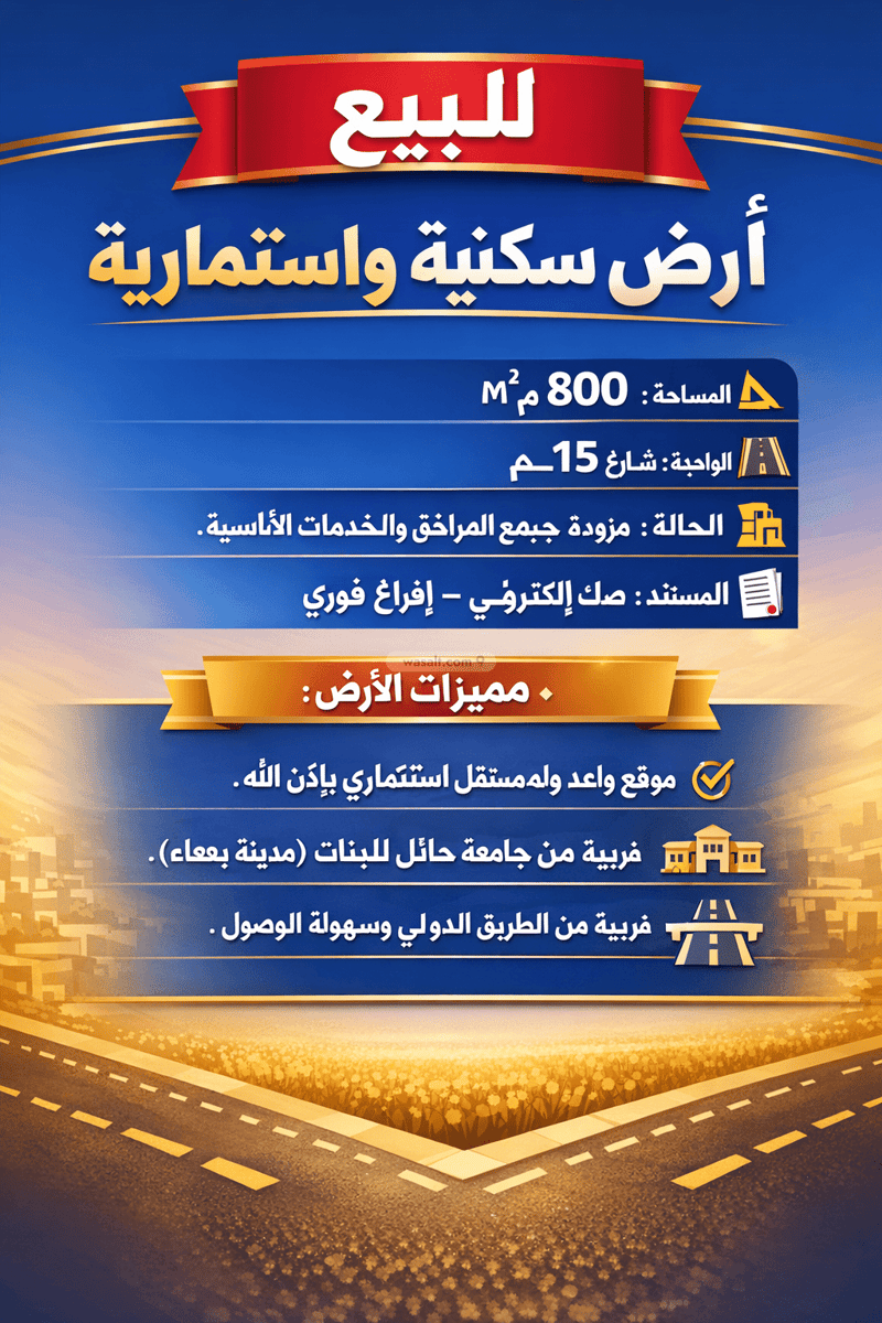 • موقع واعد وله مستقبل استثماري بإذن الله.