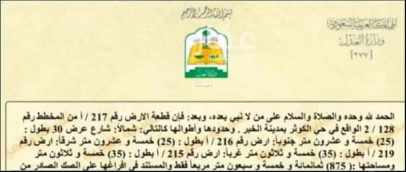 مساحة الأرض 875 متر مربع