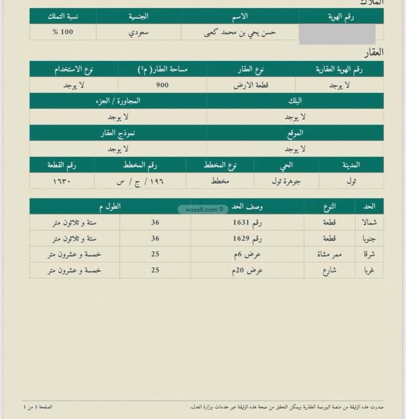 مساحة الأرض 900 متر مربع