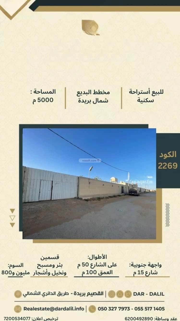 استراحة 5000 متر مربع جنوبية على شارع 15م