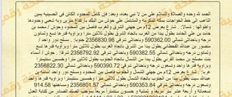يحدها 1 شارع: شرقية٬ بعرض 16 م
