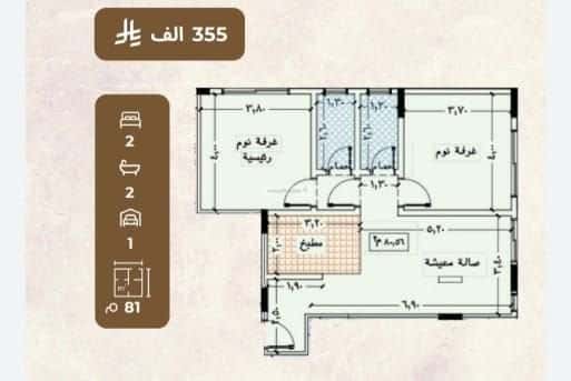المساحة 81م السعر 355الف