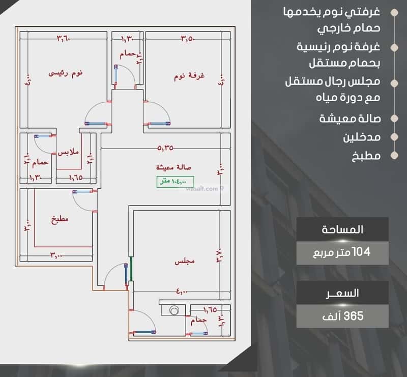- *شقة 3 غرف ، 104م، السعر (365)الف.*