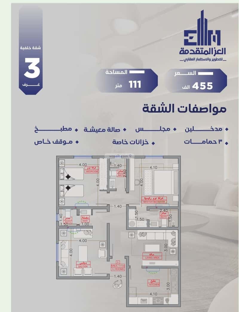 مكونة من: 3 غرف