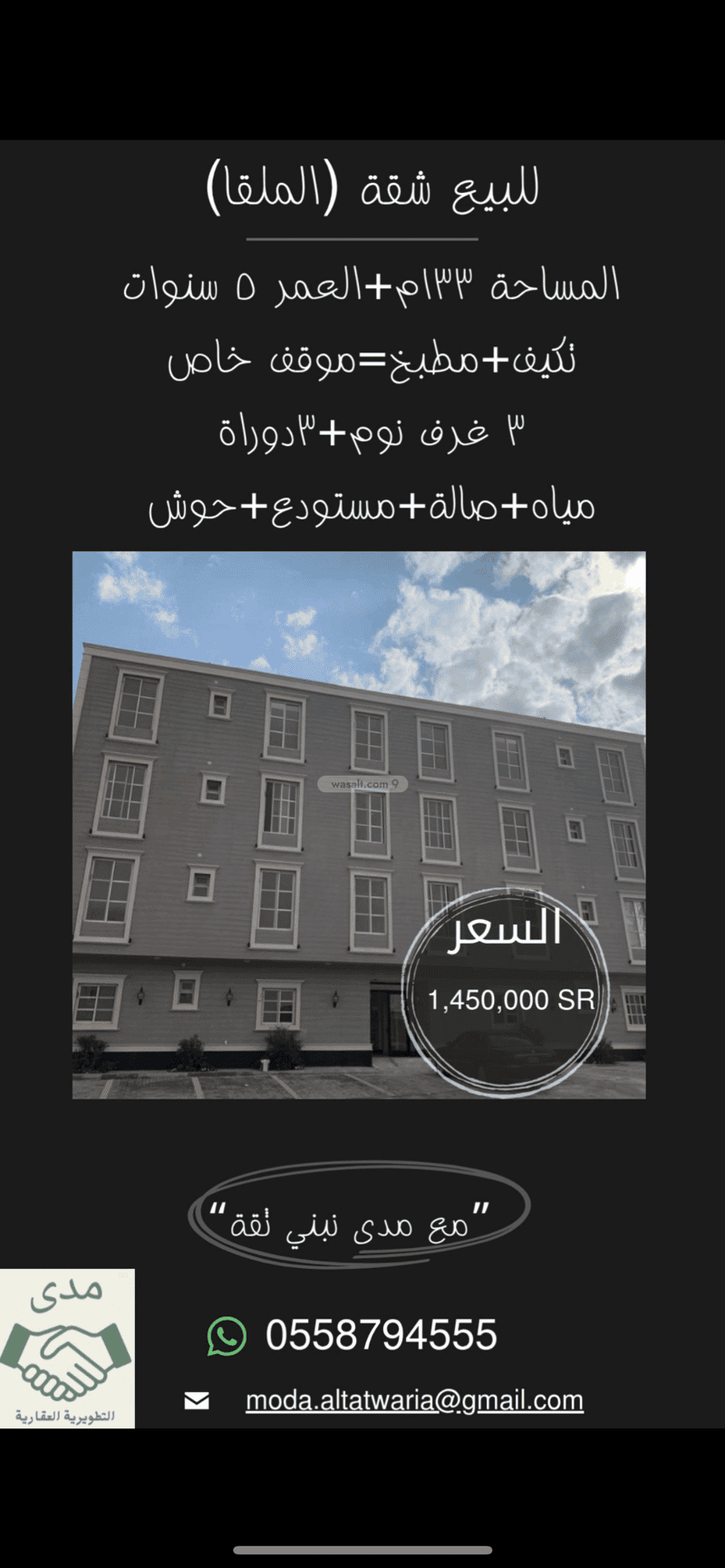 للبيع شقة حي الملقا