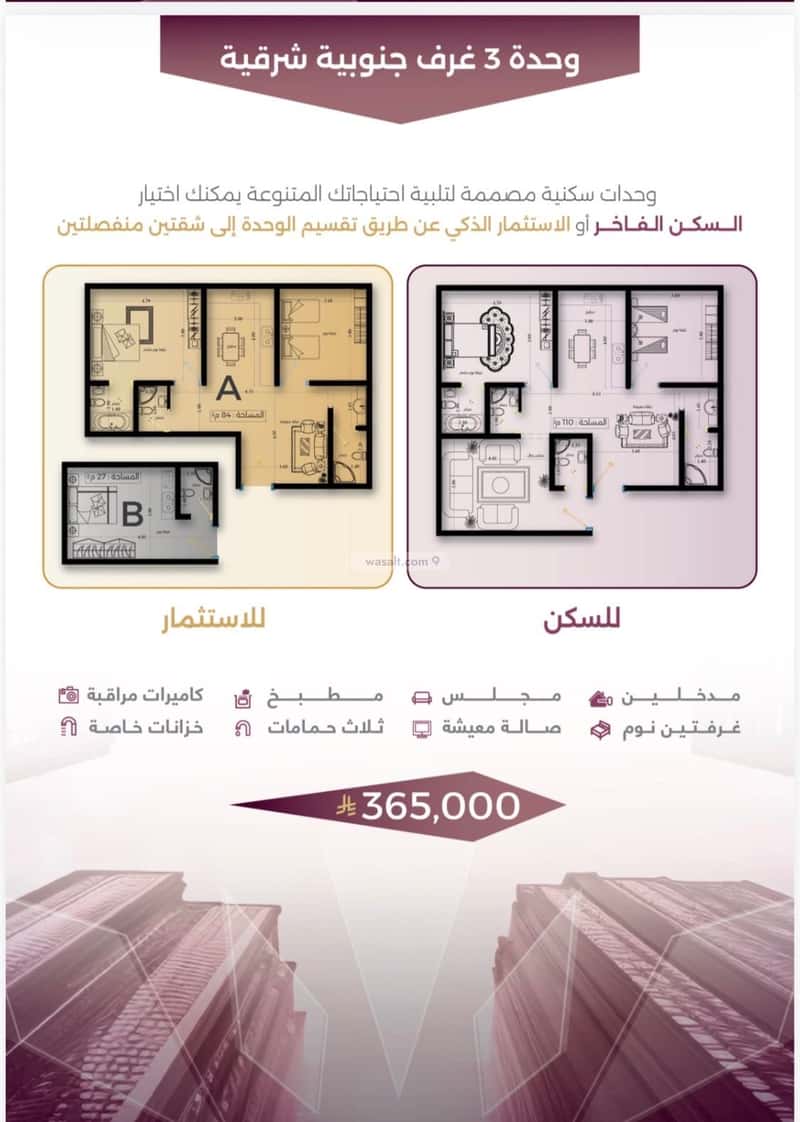 شقه 3غرف مساحة 110متر. بسعر 365الف