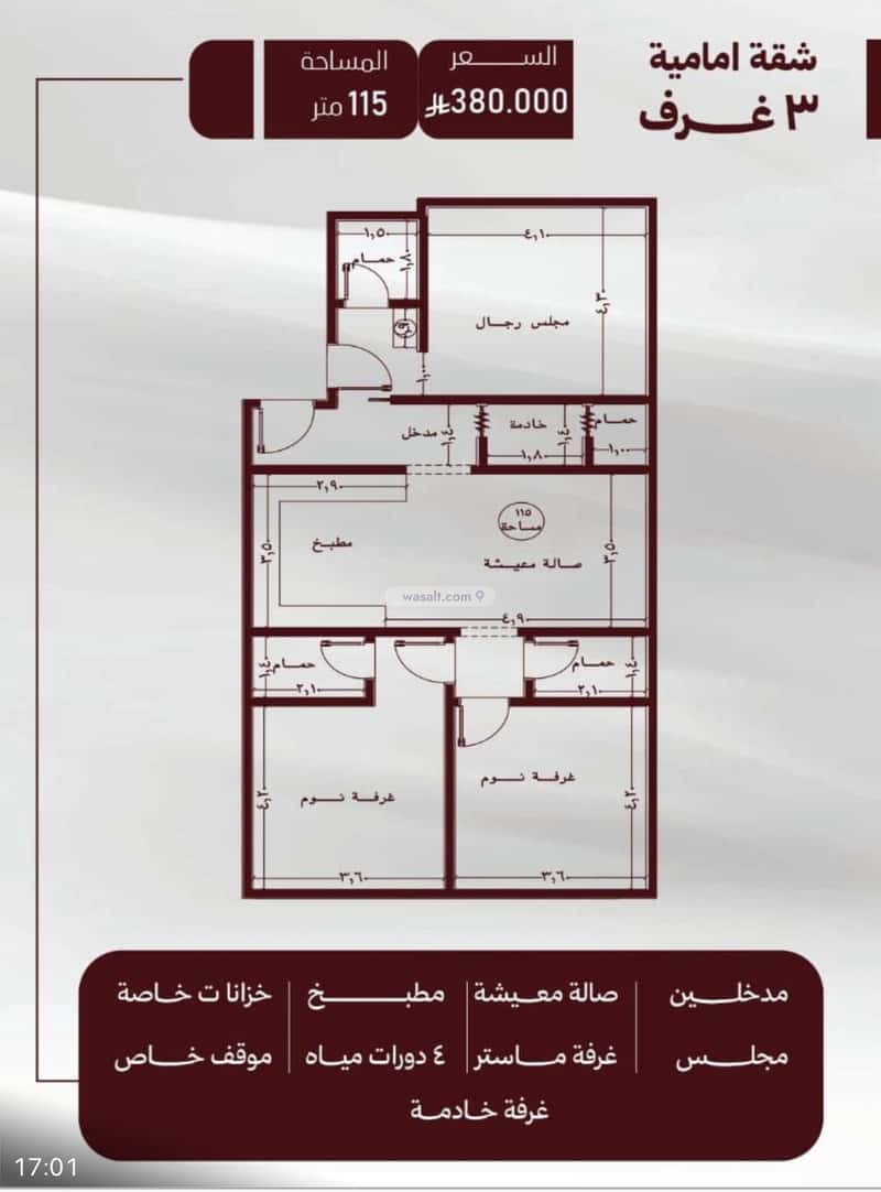 مكونة من: 3 غرف