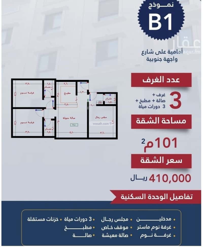 مكونة من: 3 غرف