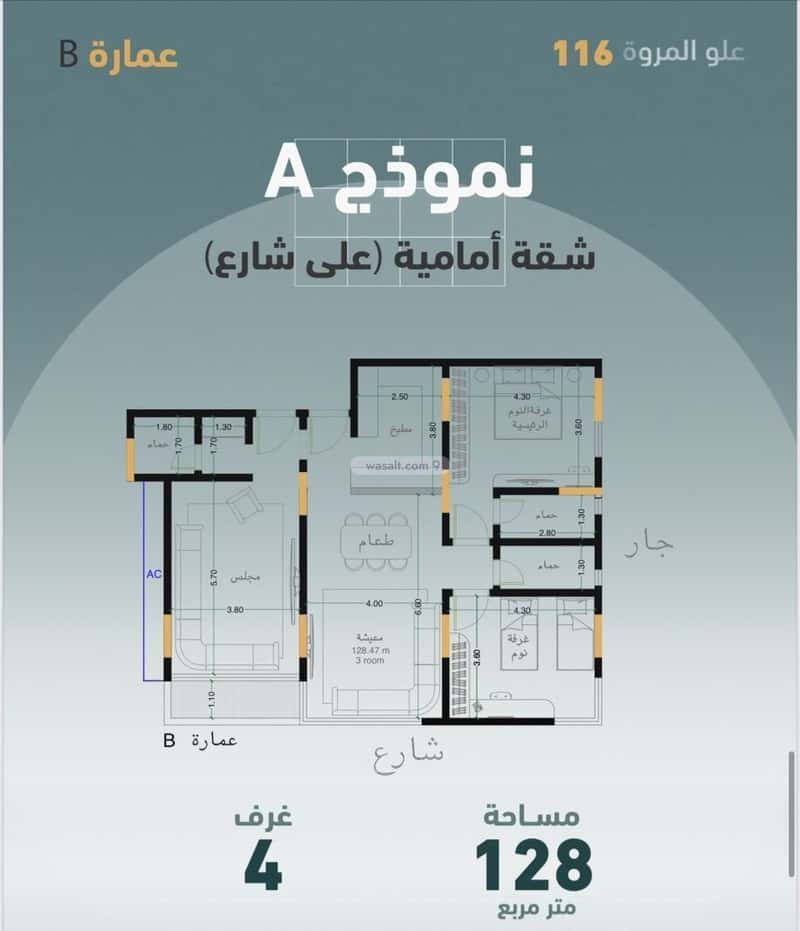 📐 المساحة: 128 متر