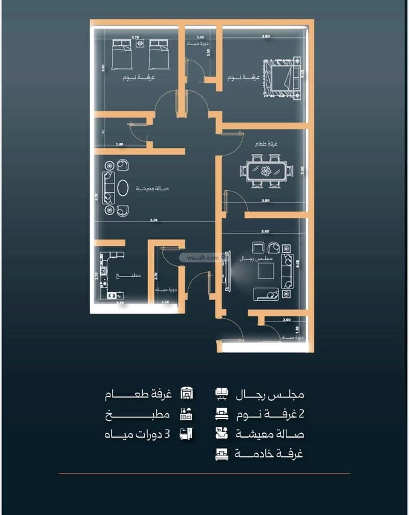 المساحة مناسبة وموزعة بتصميم حديث ومريح للعائلة 👨‍👩‍👧‍👦