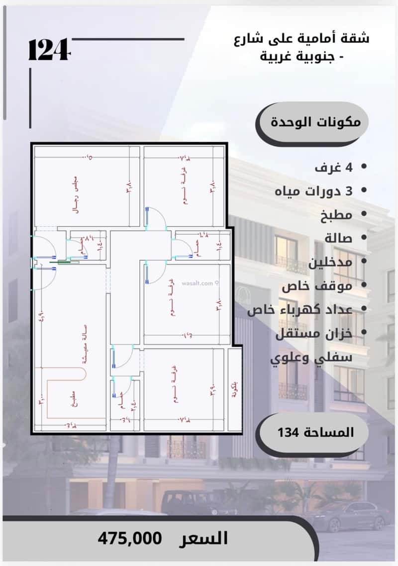 شقه 4غرف اماميه على شارعين جنوبيه غربيه