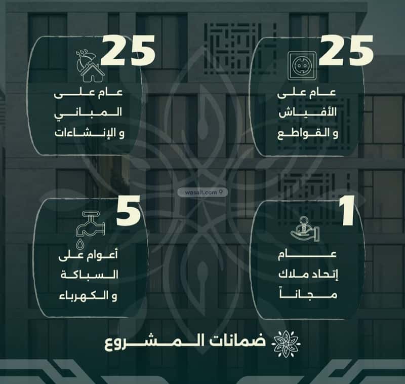 ضمانات هيكل إنشائي وكهرباء وسباكة حتى 25 سنة