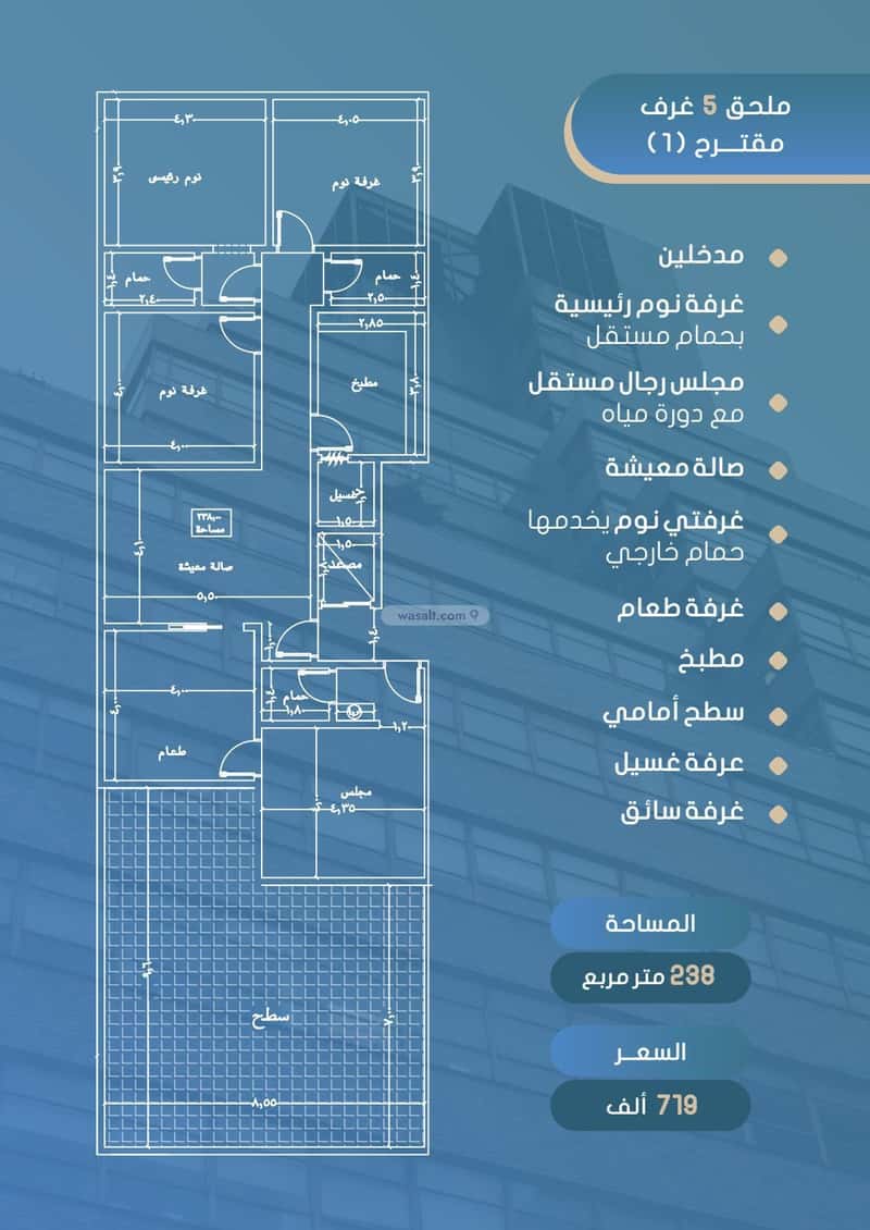 مكونة من: 5 غرف و 3 دورات مياه و 1 صالة و 1 مجلس
