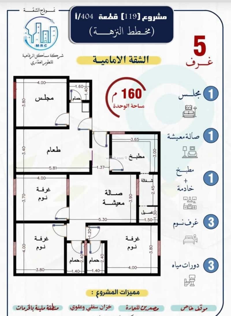 مكونة من: 5 غرف