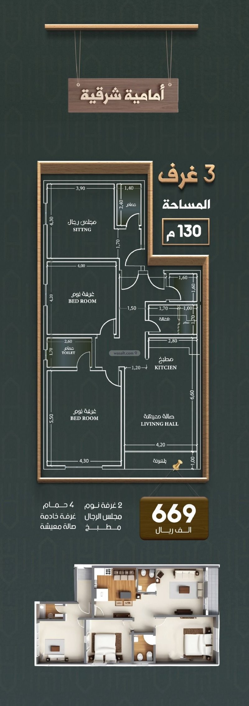 مكونة من: 6 غرف و 4 دورات مياه و 1 صالة و 1 مجلس