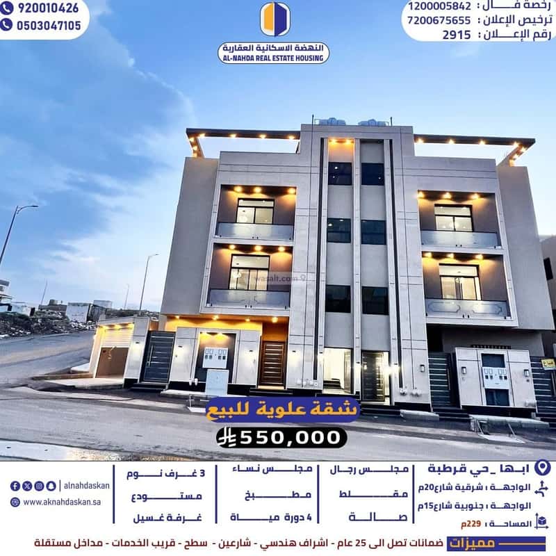 الحد الأقصىشقة علوية للبيع ابها حي قرطبة _ الغدير