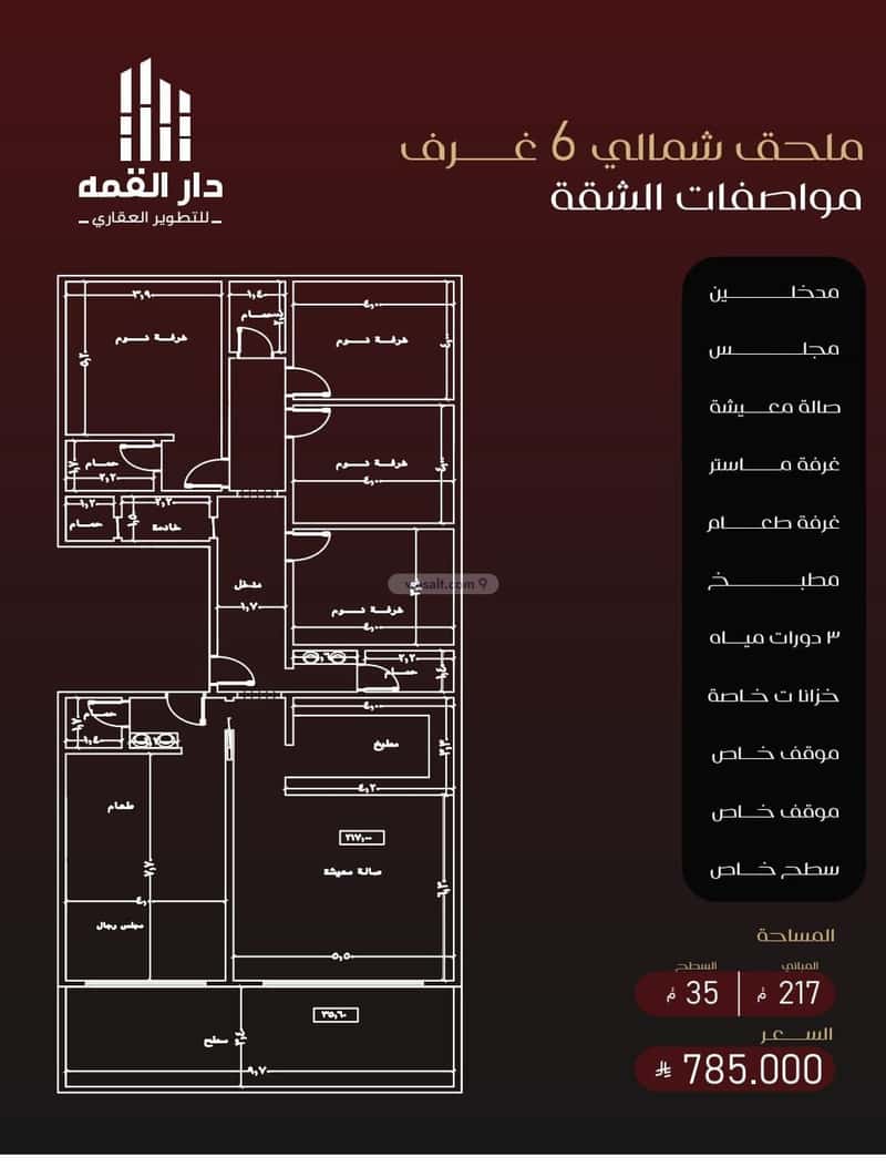 ملحق ٦ غرف مساحه 252م