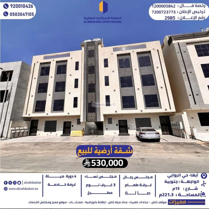 شقة دور أرضي أبها حي الروابي