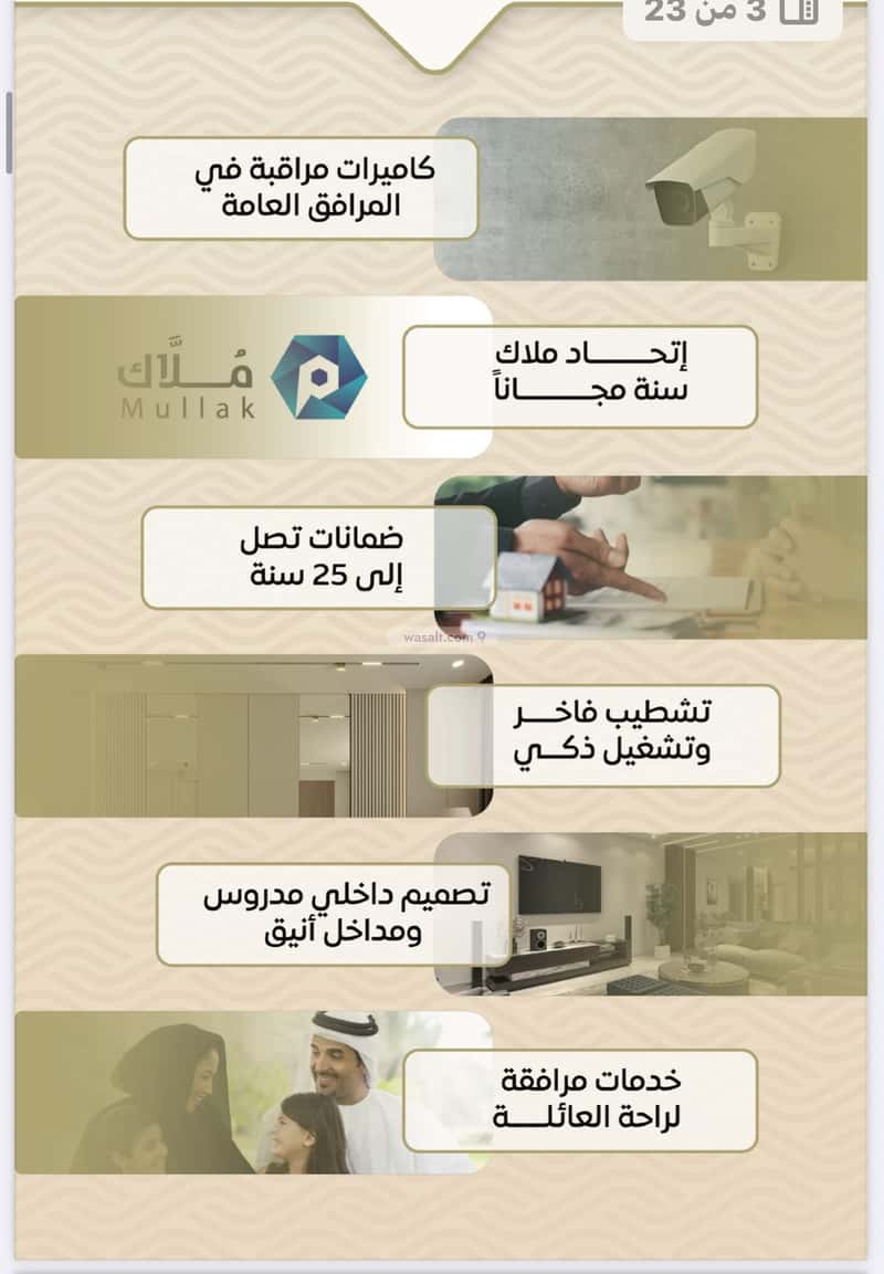 مكونة من: 5 ادوار و 3 غرف و 3 دورات مياه و 1 صالة و 1 مجلس