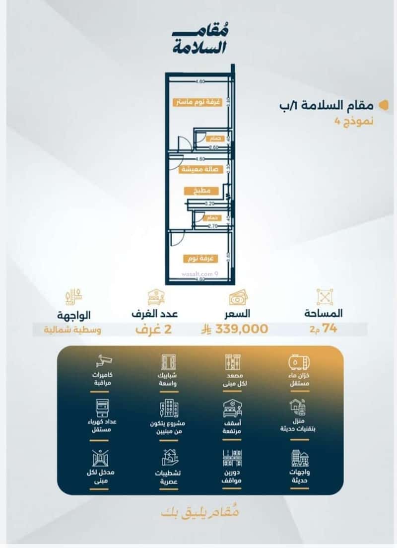 غرفتين شمالية المساحة 74 متر السعر 339 الف
