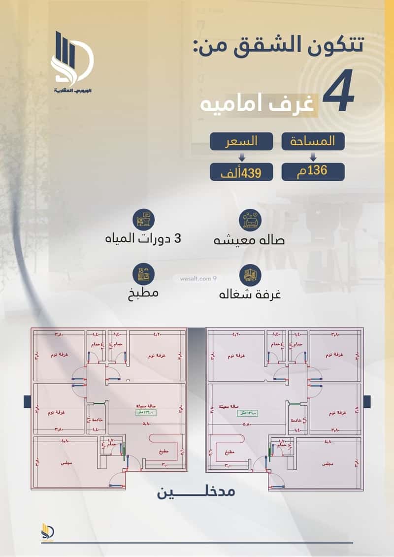 - مدخلين منفصلين