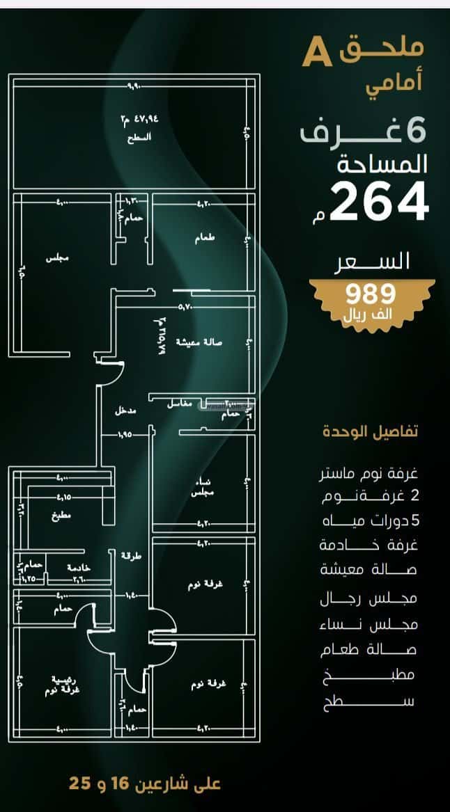 شقة 1358.48 متر مربع ب 6 غرف