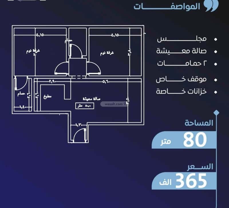 مكونة من: 4 غرف و 3 دورات مياه و 1 صالة و 1 مجلس