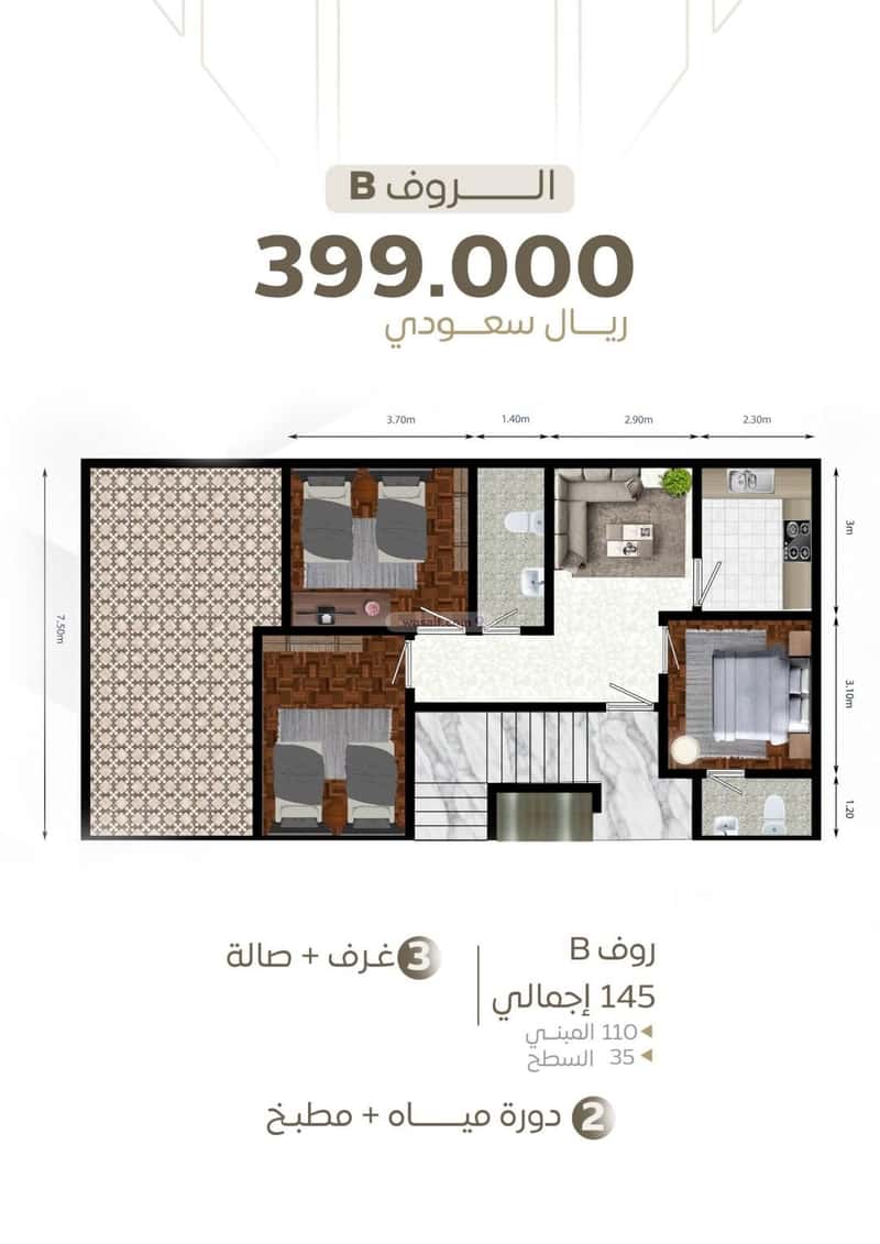 مكونة من: 3 غرف