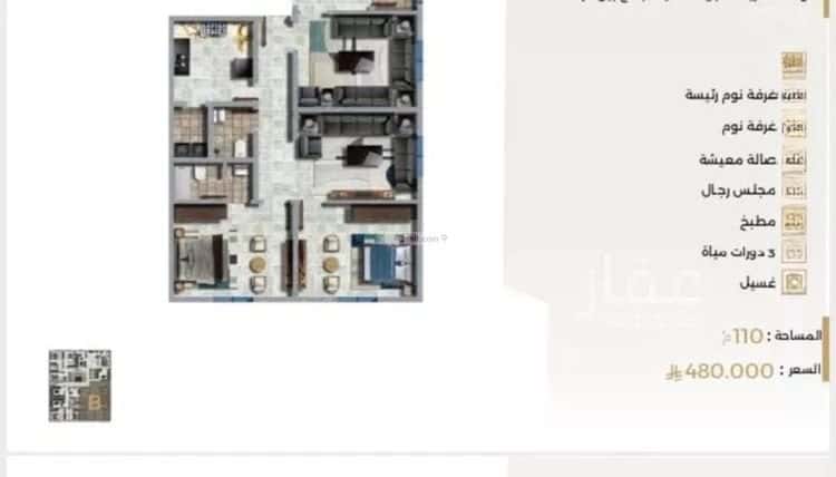 شقة 525 متر مربع ب 3 غرف