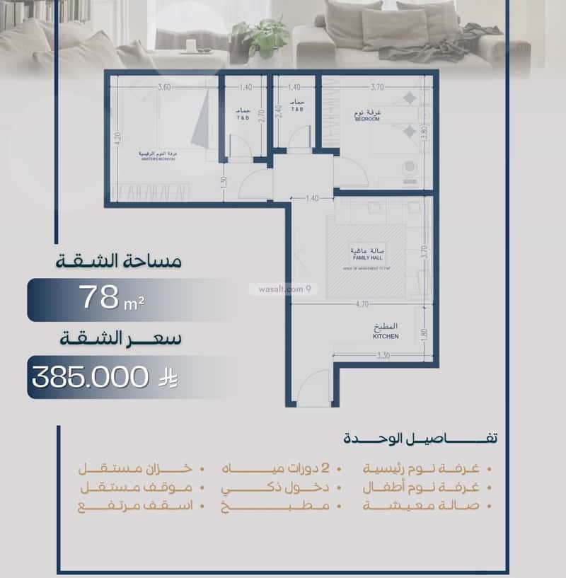 مكونة من: 5 ادوار و 2 غرفة و 2 دورة مياه و 1 صالة و 1 مجلس