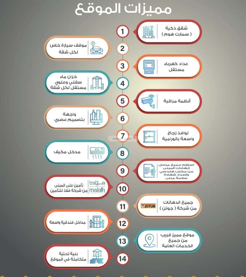 مكونة من: 5 ادوار و 4 غرف و 3 دورات مياه و 1 صالة و 1 مجلس