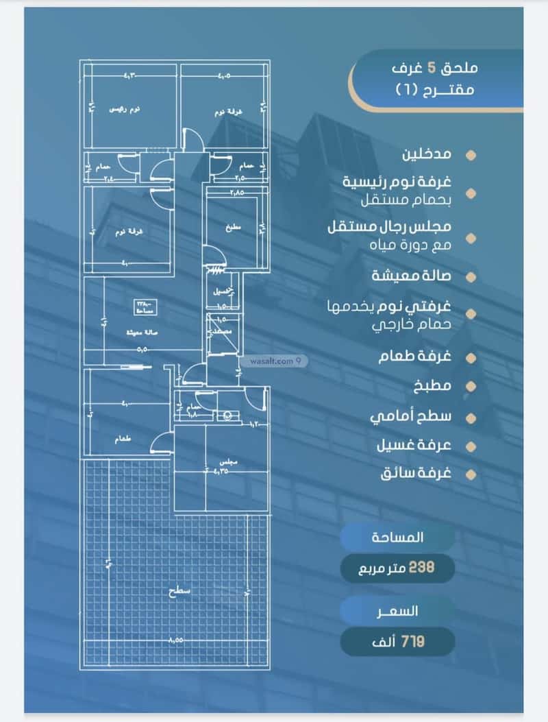 شقة 698.43 متر مربع ب 5 غرف