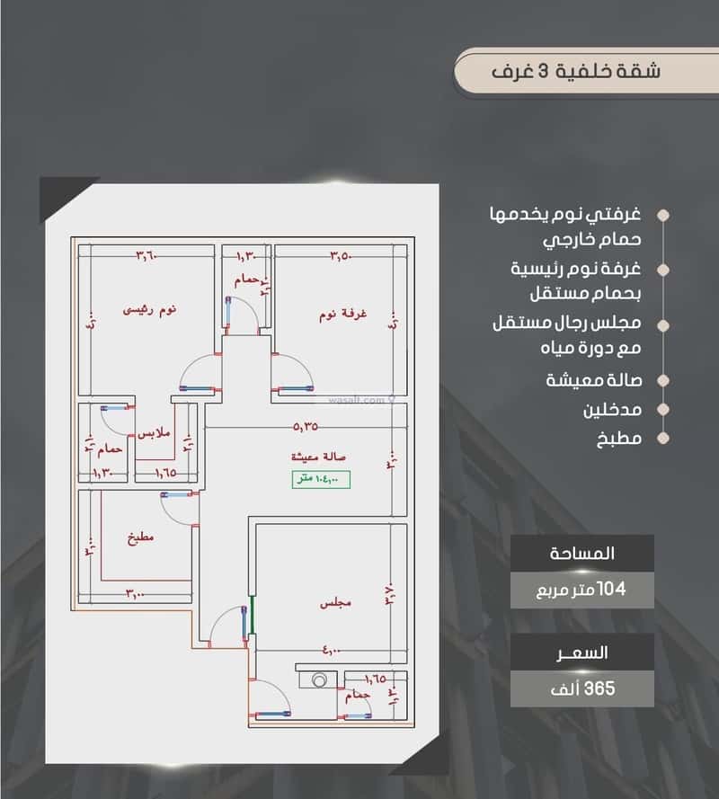 شقة 704 متر مربع ب 3 غرف
