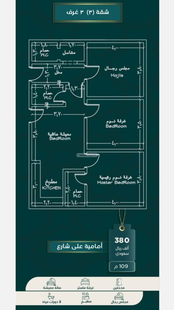 مكونة من: 5 ادوار و 4 غرف و 3 دورات مياه و 1 صالة و 1 مجلس