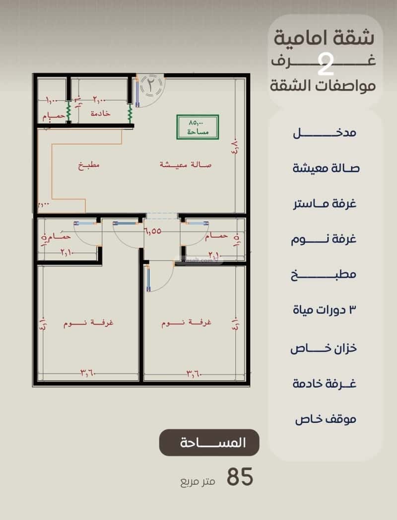 مكونة من: 5 ادوار و 2 غرفة و 3 دورات مياه و 1 صالة و 1 مجلس