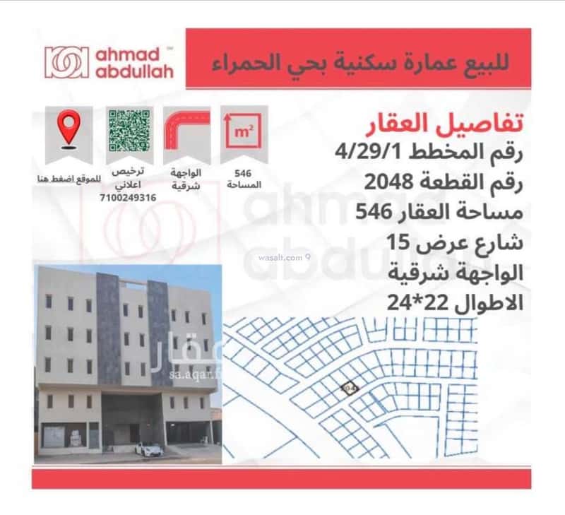 عمارة للبيع في حي الحمراء٬ مكة المكرمة